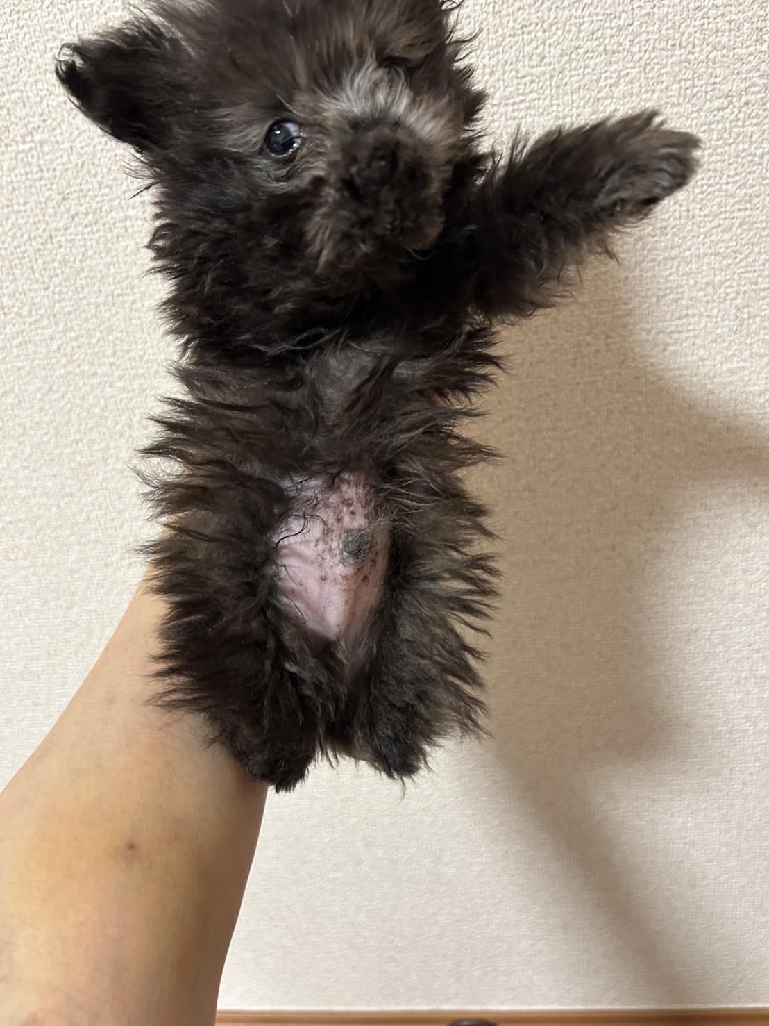 🐶お母さんが後ろ足を2本かじってしまいました。